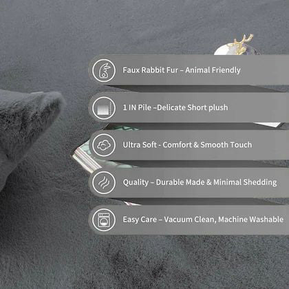 MATERIAL: Made Of 1000 Gsm From 100% High-quality Rabbit Fur To Add a Super-soft Feel & Comfort. We Use Premium Plush Faux Rabbit Skin. Each Pile Of The Rugs Is Longer Than 0.8 Inches. Extra Thick, Giving You A Luxurious Touch Feel. Which Soaks Up Thread Has Excellent Water Absorption Capacity & Dries Faster.